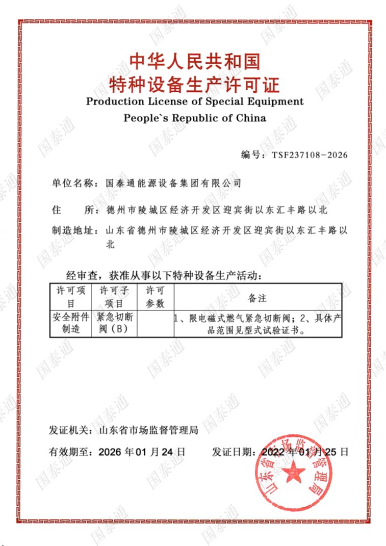 國泰通能源設備集團有限公司是一家國家級高新技術企業(yè),專注于閥門和燃氣調壓輸配設備設計、研發(fā)、生產、銷售、服務于一體的系統集成解決方案服務商。公司成立于2011年,注冊資金10168萬元,擁有北京運營中心和山東生產中心兩大基地,北京運營中心主要承擔集團公司的戰(zhàn)略規(guī)劃發(fā)展,山東生產基地承擔集團公司產品研發(fā)、生產和銷售服務,集團公司山東生產基地占地面積5萬余平方米,總建筑面積3萬余平方米,有著現代化的廠房和辦公大樓。集團公司經過十多年的茁壯發(fā)展,現擁有中、高級工程師27名,生產服務技術人員二百余人......